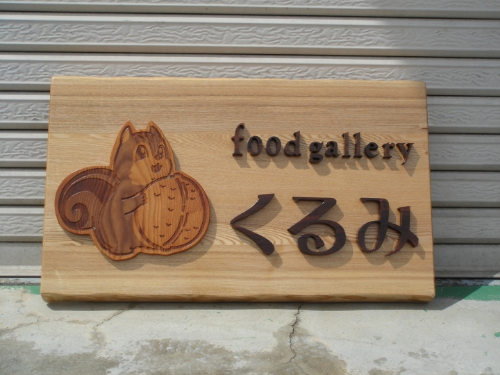 ルーターによる木彫り看板です。木材はレーザーでも彫刻はできますが、より深く彫り込むことができますので着色することが多い木看板にはルーター加工が向いています。「V字彫り」・「平彫り」・「かまぼこ彫り」に対応し、ひとつひとつ心をこめて製作しております。 |