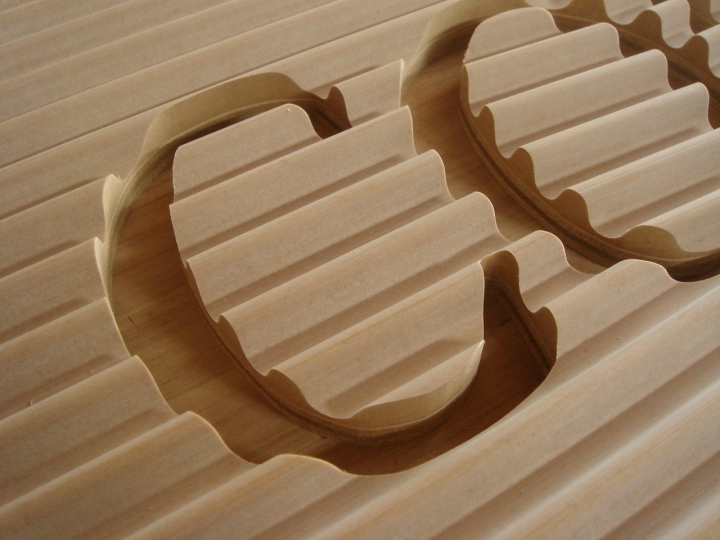 ルー ターでは木材やMDFのカットも綺麗に仕上がります。木材のカットはレーザー加工でも可能ですが、熱をかけてカットする為、小口は黒く焦げてしまいます。 ルーターでは厚みのある木材でも、小口が焦げることなくカットできますで、お客様の使用用途にあわせてご提案致します。 |